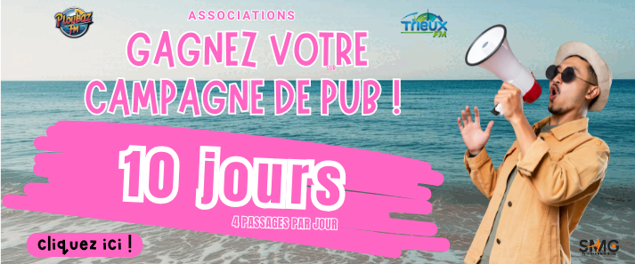 Si vous souhaitez en savoir plus sur les modalités de participation et tenter de gagner cette campagne publicitaire, remplissez dès maintenant le bulletin joint. Ne manquez pas cette occasion de donner un coup de projecteur à votre association et à votre prochain événement !